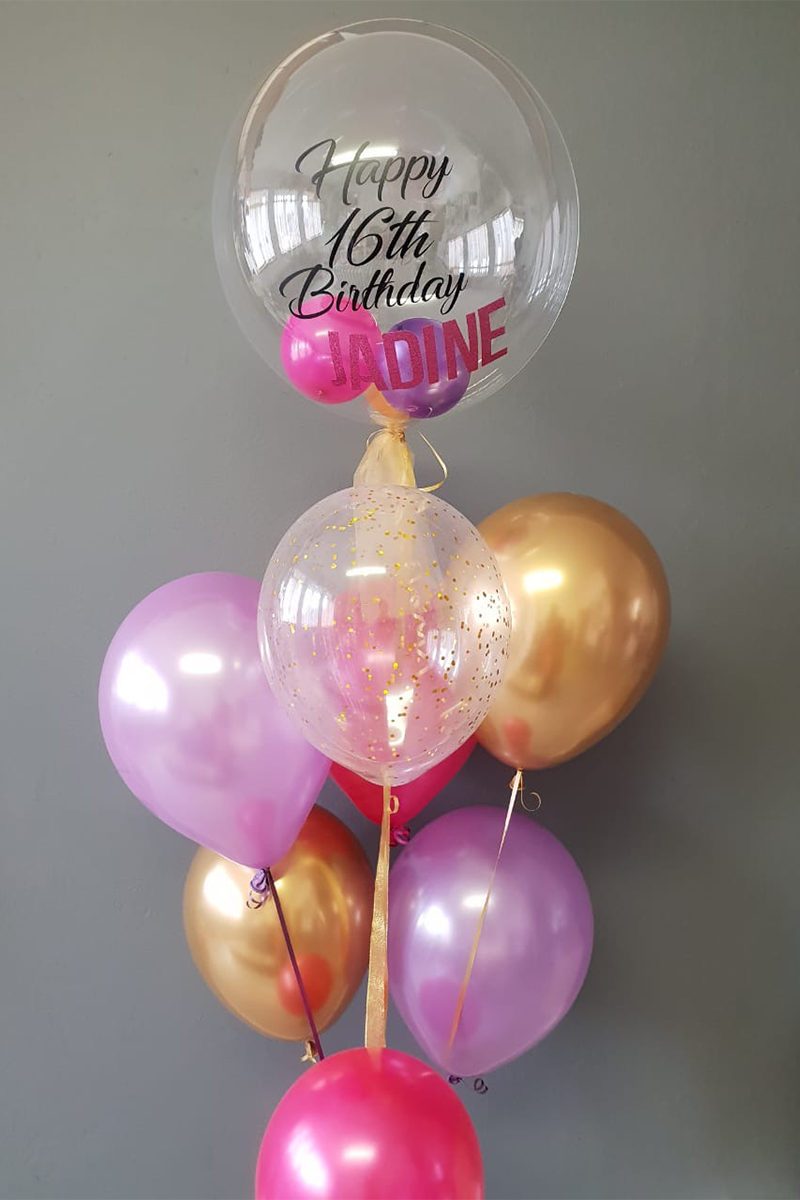 • 1 x 24″ Custom Bubble – Mini Balloons inside